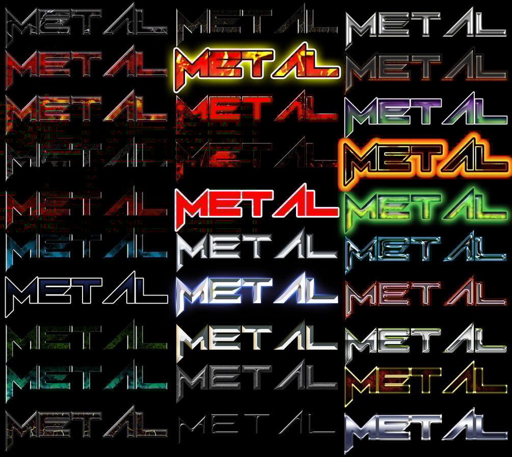 The JPEGARCHIE HEAVY METAL PACK includes 39 text/layer styles which can be applied to your work in seconds to create a dynamic, heavy metal style effect. It also includes 10 unique patterns to apply to your work, and 13 fonts which work great with this pack.
